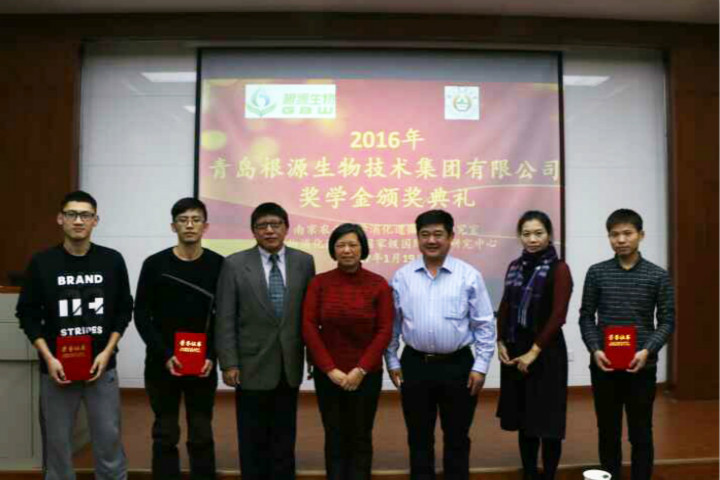 1月19日,“根源獎學金”頒獎典禮在南京農業(yè)大學消化道微生物實驗室隆重舉辦,南京農業(yè)大學動物科技學院博導朱偉云教授,集團張大偉博士、肖志壯博士、周莉芬博士出席本次頒獎典禮。南京農業(yè)大學消化道微生物實驗室研究生劉壯榮獲2016根源獎學金一等獎,研究生余水清、張亞南榮獲2016根源獎學金二等獎。