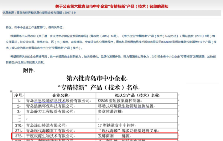 近日,青島市民營經濟發(fā)展局公示了第五批專精特新小巨人名單,青島市39家企業(yè)獲批,其中包括根源集團旗下子公司——青島尚德生物技術有限公司。
